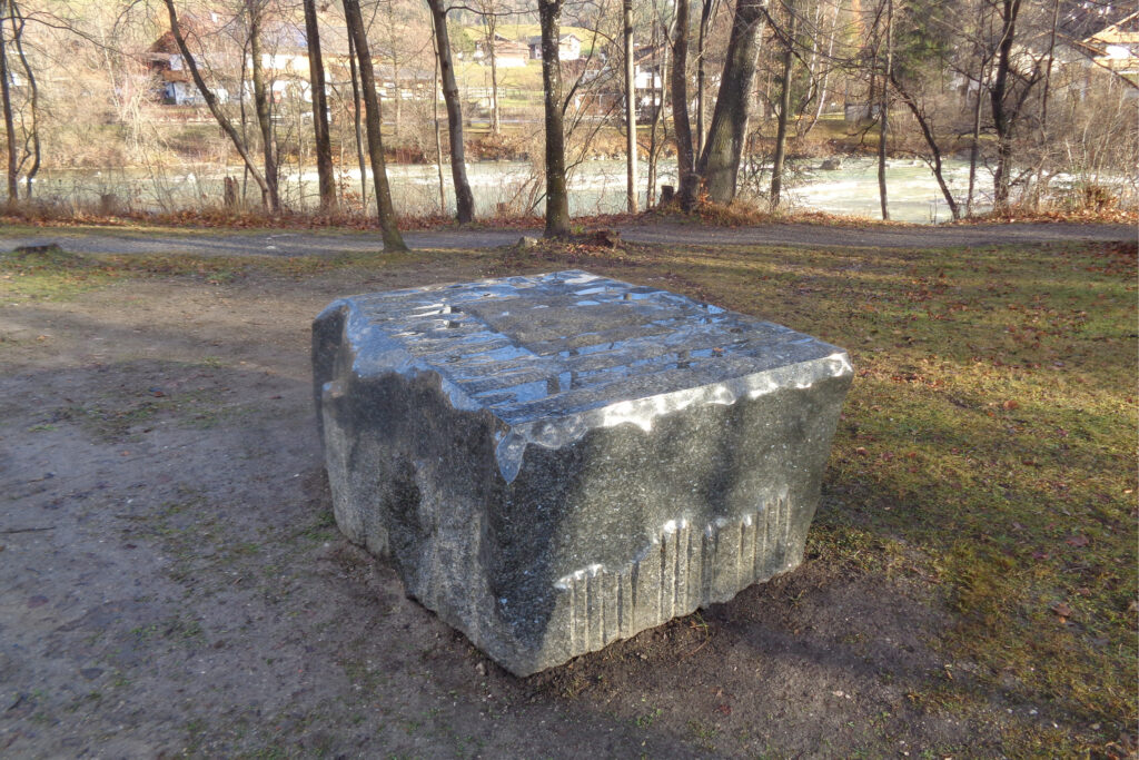 Christine Falbesoner, geboren 1966 in Kufstein, kam 1987 durch die Begegnung mit dem österreichischen Bildhauer Karl Prantl zur Steinbildhauerei. 1988 nahm sie zum ersten Mal an der Internationalen Sommerakademie für Bildende Kunst Salzburg teil, wo sie die Bildhauer Milos Chlupac, Kenjiro Azuma, Janez Lenassi und Makoto Fujiwara kennenlernte, die sie nachhaltig prägten. Von 1992 bis 1996 studierte Falbesoner an der Akademie der bildenden Künste in Wien bei Prof. Bruno Gironcoli und war nebenher auch als Steinrestauratorin tätig. Seit 1997 ist sie Mitglied der Tiroler Künstler:innenschaft. 2000 übersiedelte Falbesoner nach München. Es folgten Teilnahmen am renommierten internationalen Steinbildhauersymposion Norge im Steinbruch Stalaker bei Larvik (Norwegen). Neben dem in Kramsach ausgestellten, zehn Tonnen schweren norwegischen Labrador, der den Titel Firmament des Nordens« (2002) trägt, sind in Tirol noch weitere Arbeiten der Künstlerin zu sehen. In ihrer Heimatgemeinde Söll stehen »Kalinka« (2001), ein zwanzig Tonnen schwerer ukrainischer Granit, sowie »Black Bull« (2019), ein fünfzehn Tonnen schwerer norwegischer Labrador.